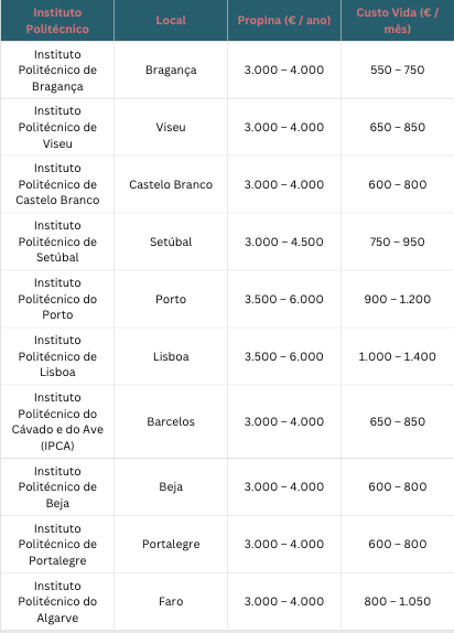 - One-off installation allowance - amount paid once at the beginning of the scholarship to support arrival and installation in Portugal.